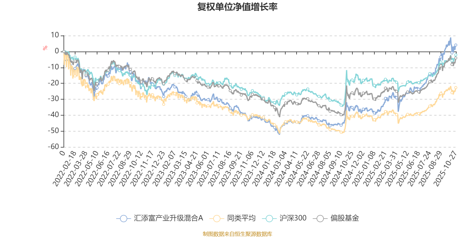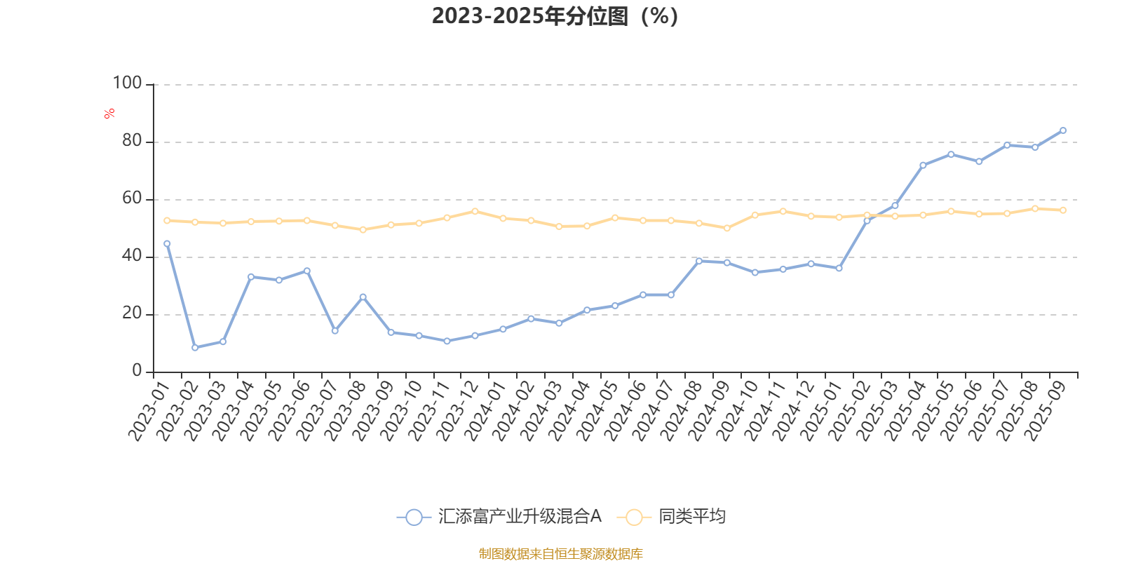 截至10月27日,汇添富产业升级混合A近三个月复权单位净值增长率为23.34%,位于同类可比基金167/621;近半年复权单位净值增长率为45.43%,位于同类可比基金108/619;近一年复权单位净值增长率为60.53%,位于同类可比基金51/611;近三年复权单位净值增长率为28.98%,位于同类可比基金166/518。