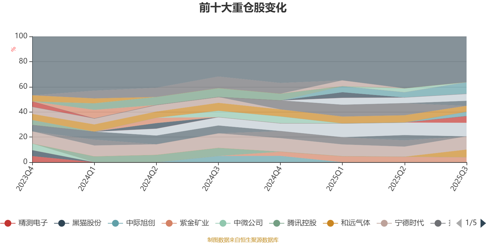 该基金持股集中度较高。截至2025年三季度末,基金十大重仓股分别是科伦博泰生物-B、宁德时代、阿里巴巴-W、和远气体、中芯国际、广信科技、恒瑞医药、银轮股份、紫金矿业、信达生物。
