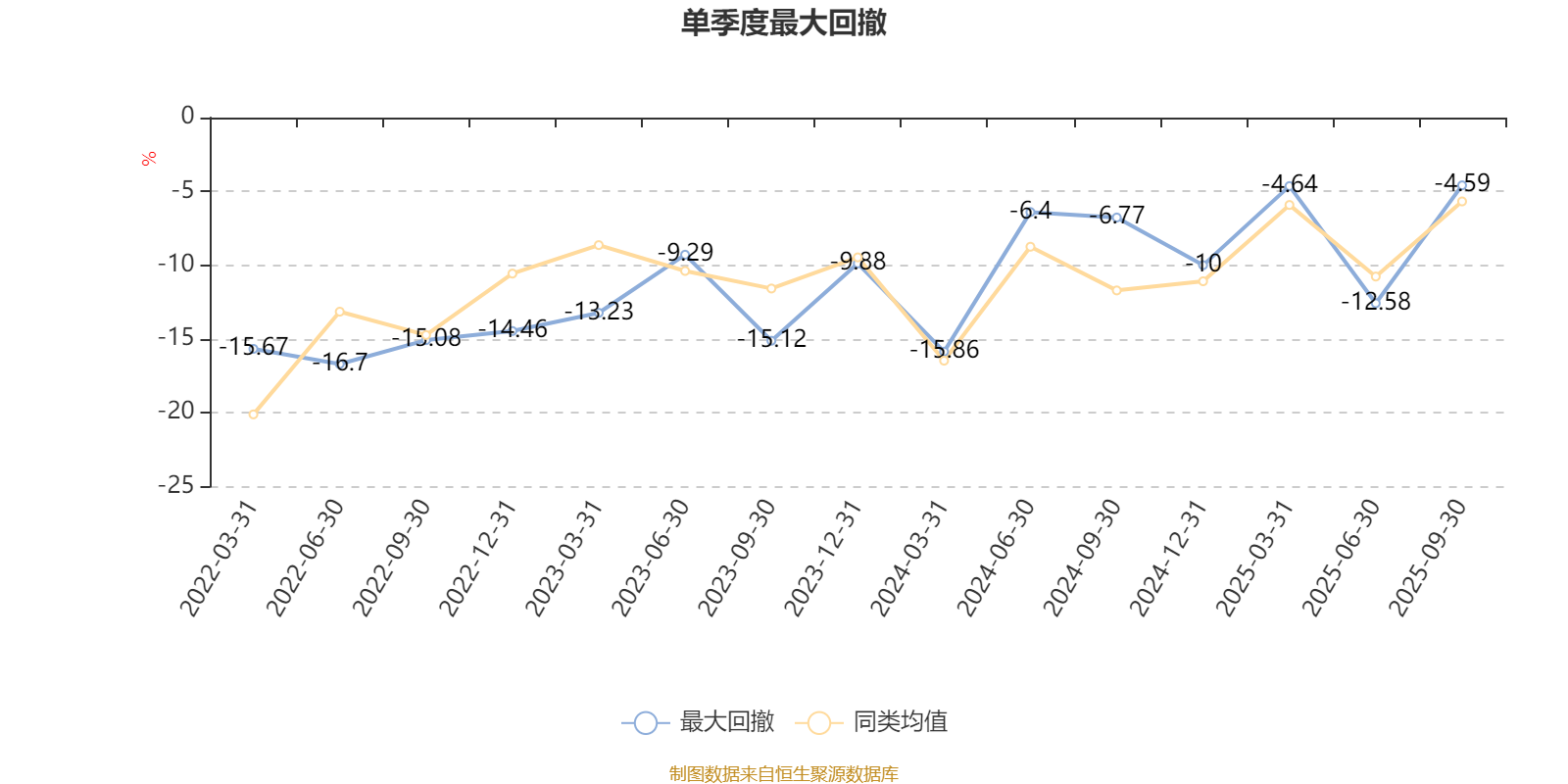 截至10月27日,基金近三年最大回撤为42.83%,同类可比基金排名406/513。单季度最大回撤出现在2022年二季度,为16.7%。