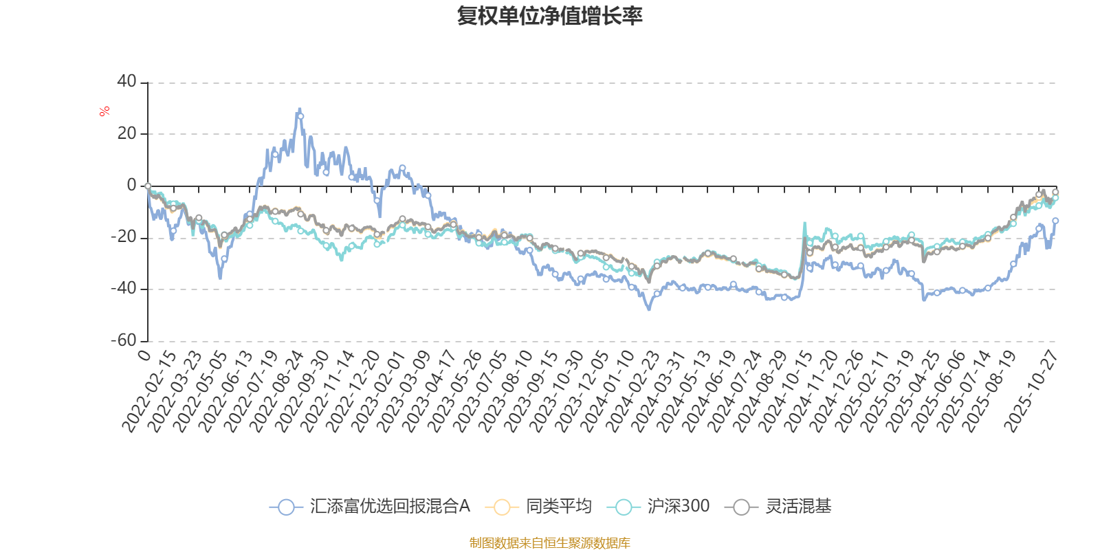 截至10月27日,汇添富优选回报混合A近三个月复权单位净值增长率为36.95%,位于同类可比基金128/1287;近半年复权单位净值增长率为47.38%,位于同类可比基金183/1287;近一年复权单位净值增长率为23.86%,位于同类可比基金597/1287;近三年复权单位净值增长率为-21.02%,位于同类可比基金1224/1286。