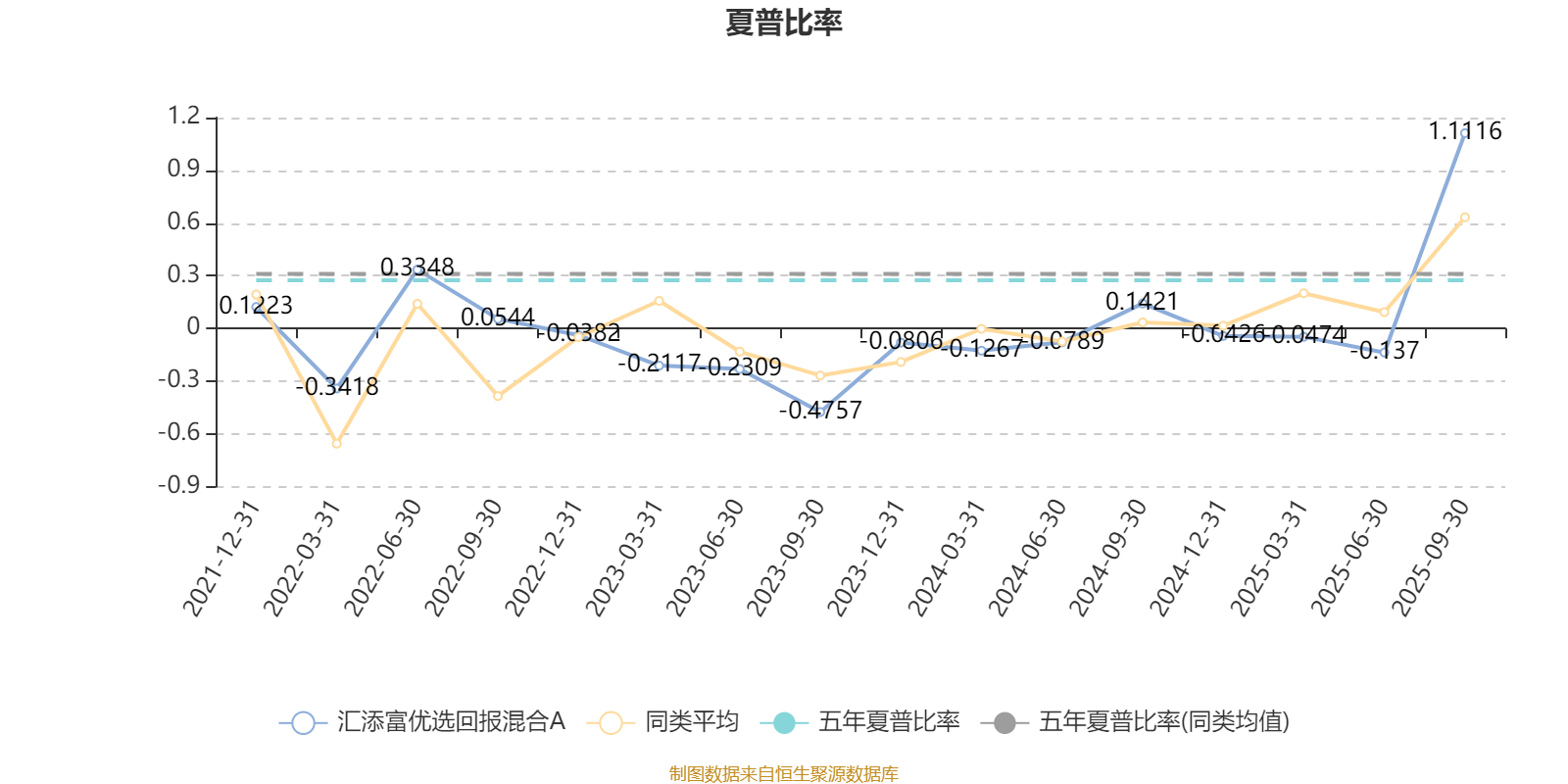 截至9月30日,基金近三年夏普比率为0.0594,位于同类可比基金1141/1285。