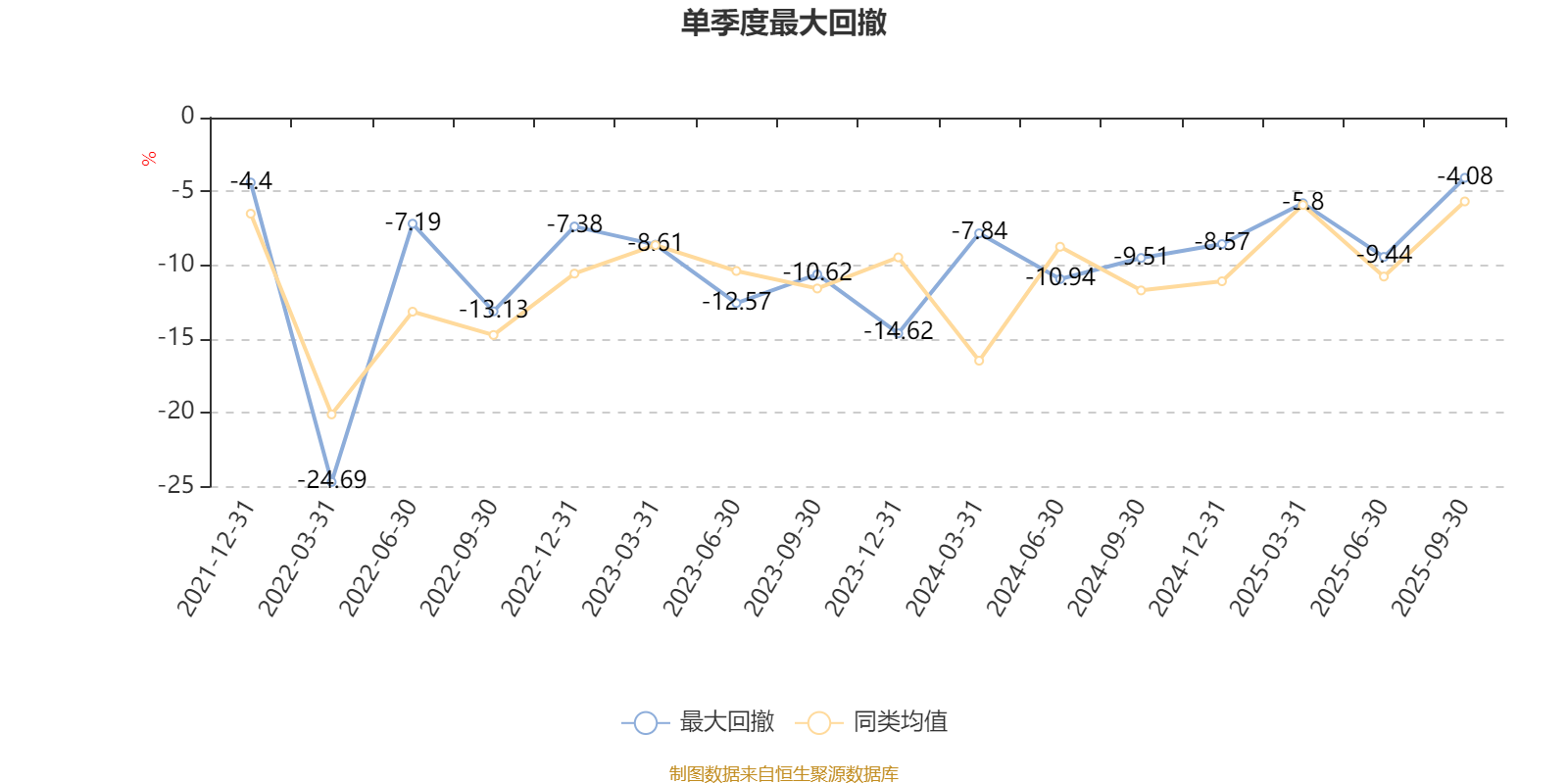 截至10月27日,基金近三年最大回撤为29.5%,同类可比基金排名113/513。单季度最大回撤出现在2022年一季度,为24.69%。