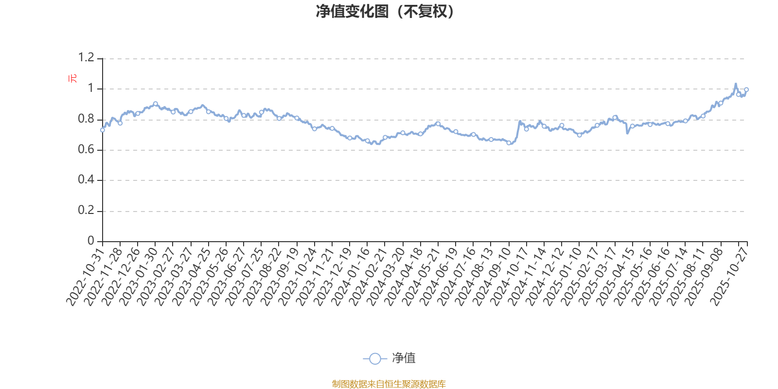 该基金属于偏股混合型基金。截至10月27日,单位净值为0.995元。基金经理是张朋,目前管理的4只基金近一年均为正收益。其中,截至10月27日,汇添富港股通专注成长近一年复权单位净值增长率最高,达32.2%;截至10月24日,汇添富积极优选三年定开混合最低,为28.29%。