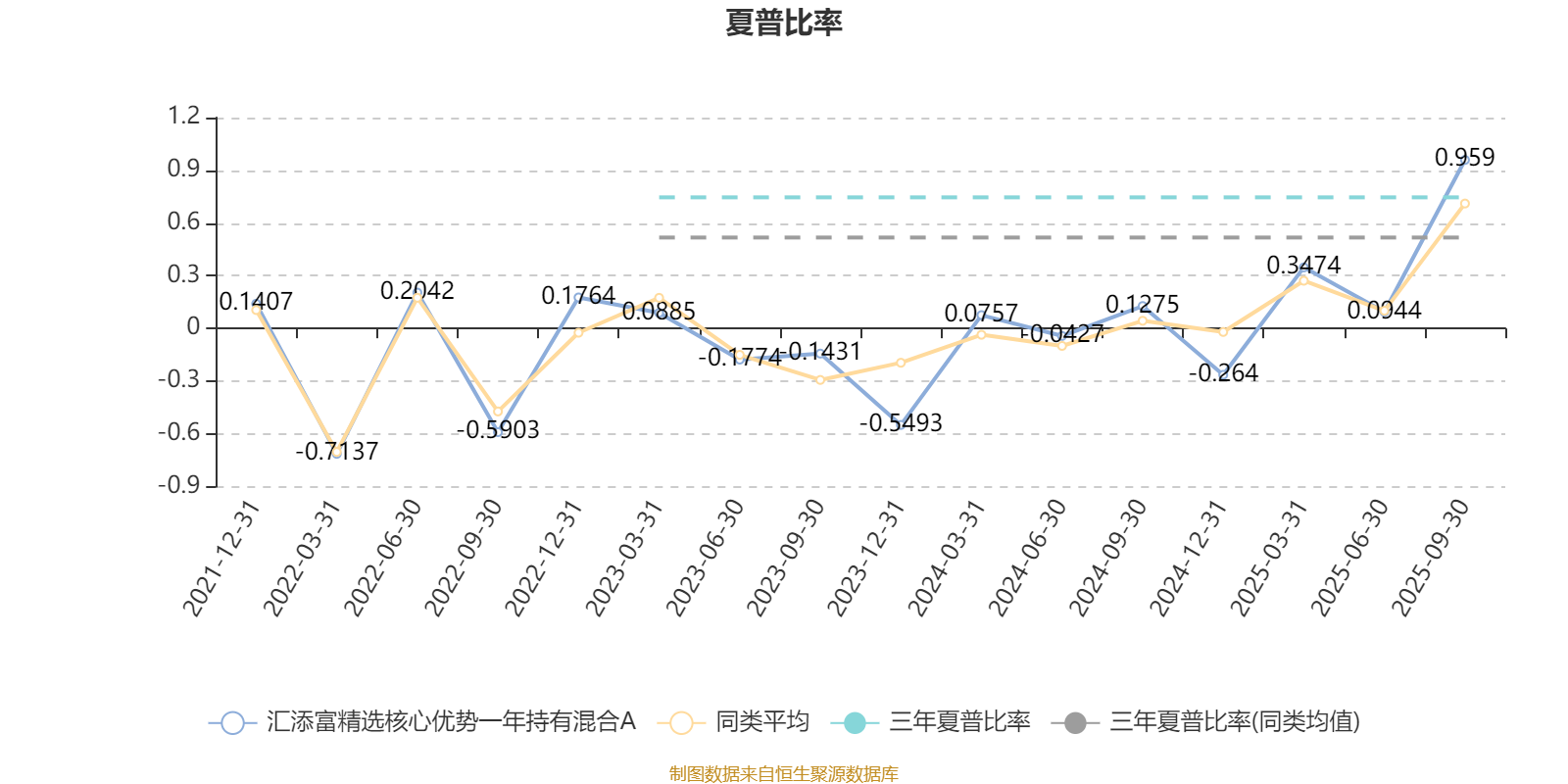 截至9月30日,基金近三年夏普比率为0.7463,位于同类可比基金125/518。