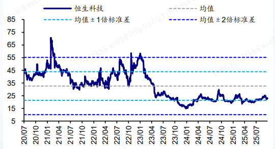 对比历史看,目前港股估值不算高。截至10/31,恒生科技PE-TTM为22.9倍、仅处于有数据以来29%分位。
