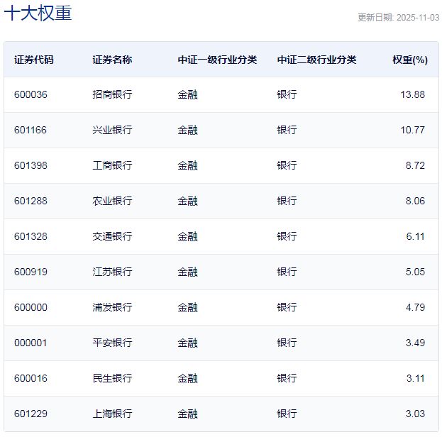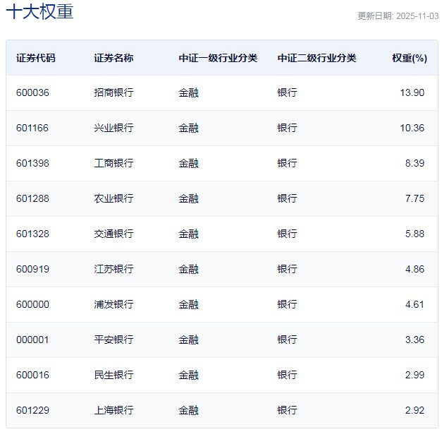 中证银行指数发布于2013年7月15日,为反映中证全指指数样本中银行行业公司证券的整体表现,为投资者提供分析工具。成分股分布于银行业,平均市值较大,持仓集中度较高。