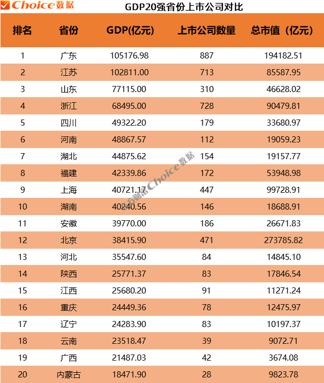 粤苏鲁浙川五省,广东上市公司数量比江苏多174家,比山东多577家;总市值是江苏、浙江的两倍有余,是山东的四倍、四川的五倍。广东在上市公司数量和总市值上均遥遥领先其他四省。