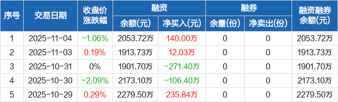 恒生消费ETF:融资净买入140万元,融资余额2053.72万元(11-04)