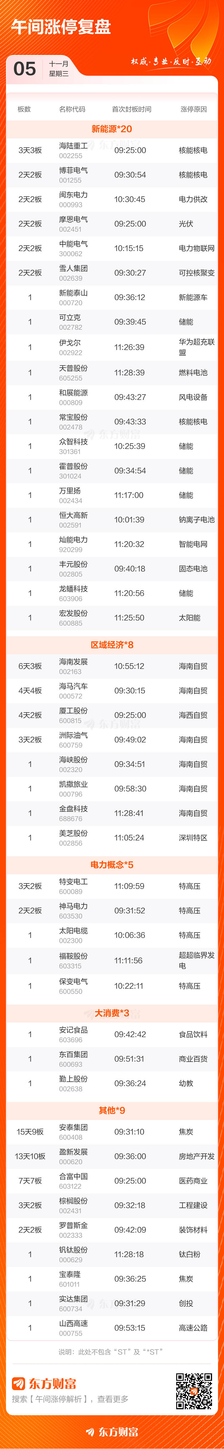 11月5日午间涨停复盘:58股涨停 海陆重工3天3板