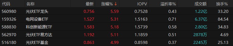 ETF收盘:光伏ETF龙头涨5.59% 亚太精选ETF跌3.56%