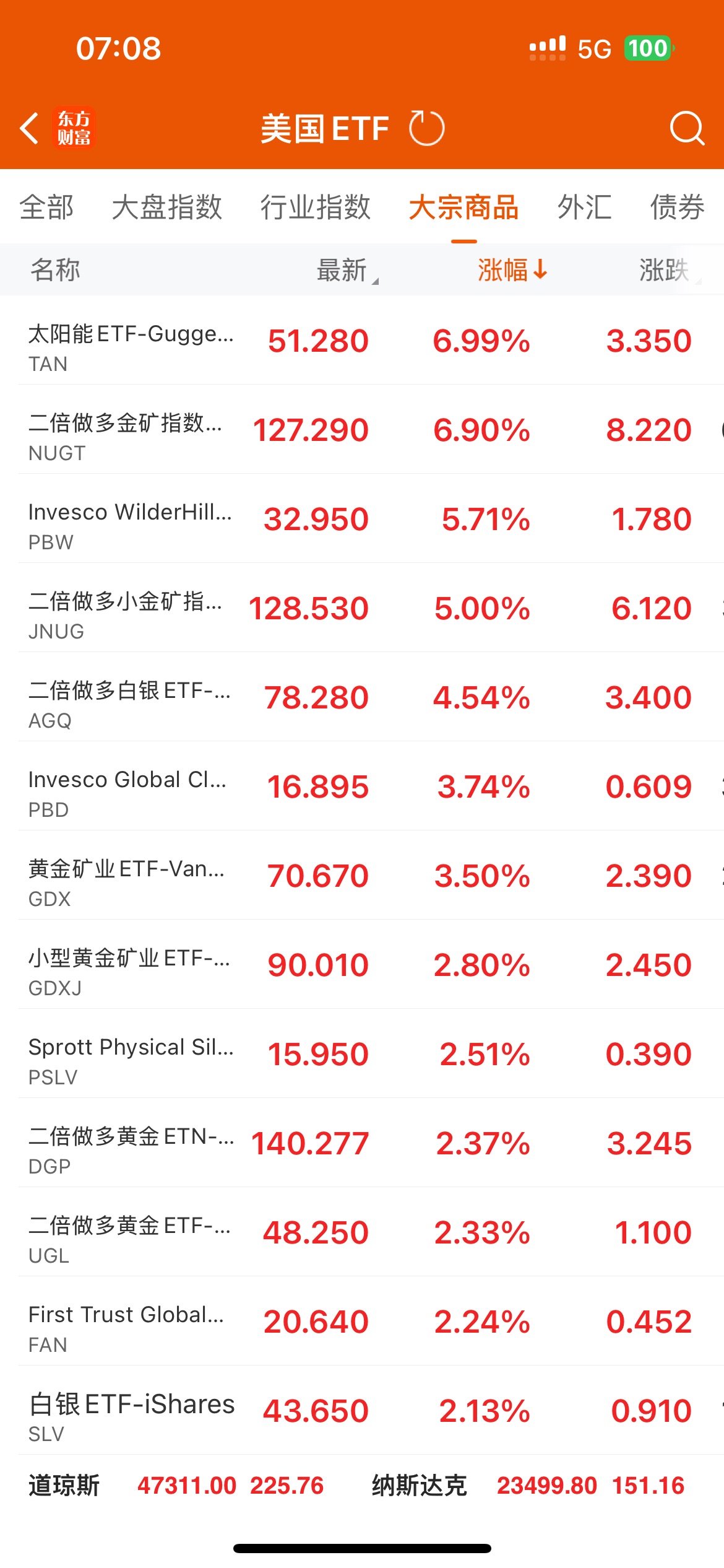 太阳能ETF-Invesco(TAN.US) 升6.99%,成交额1.01亿美元。