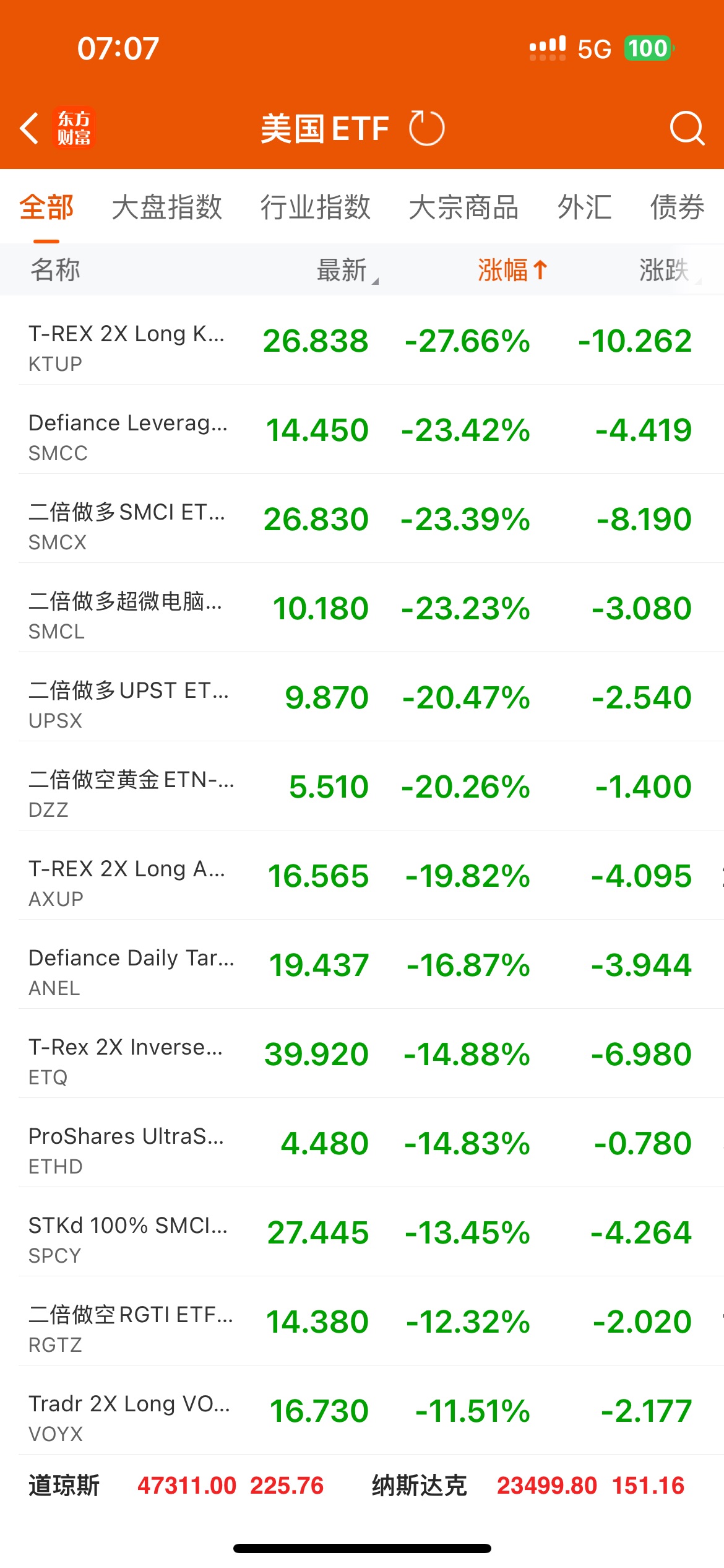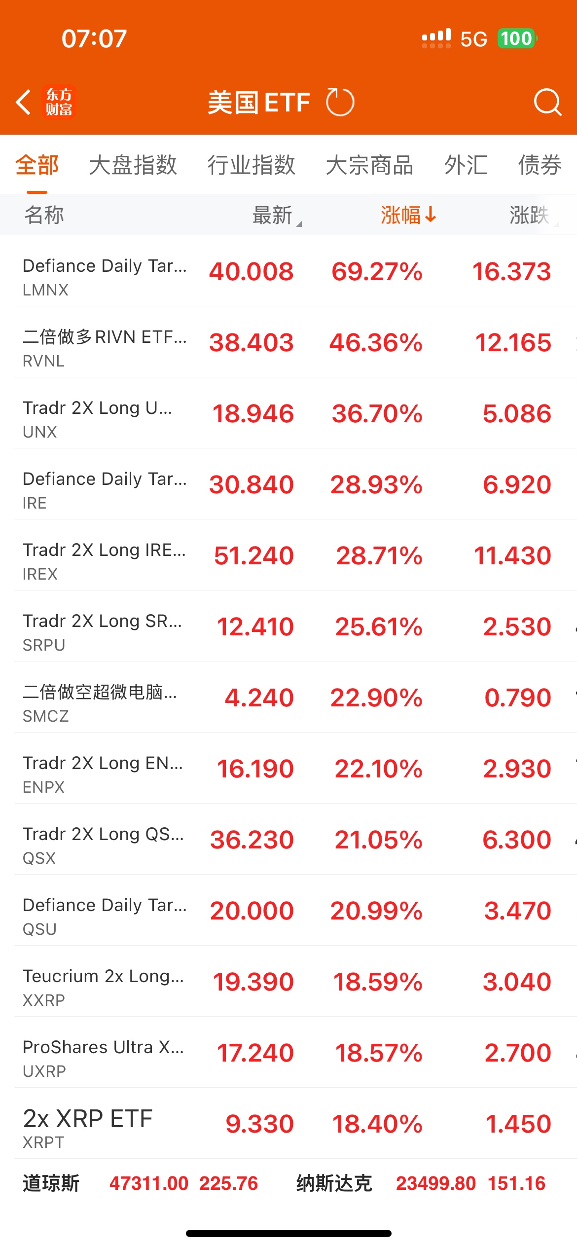 2倍做多IREN ETF-Defiance(IRE.US) 升28.93%,成交额1.67亿美元。
