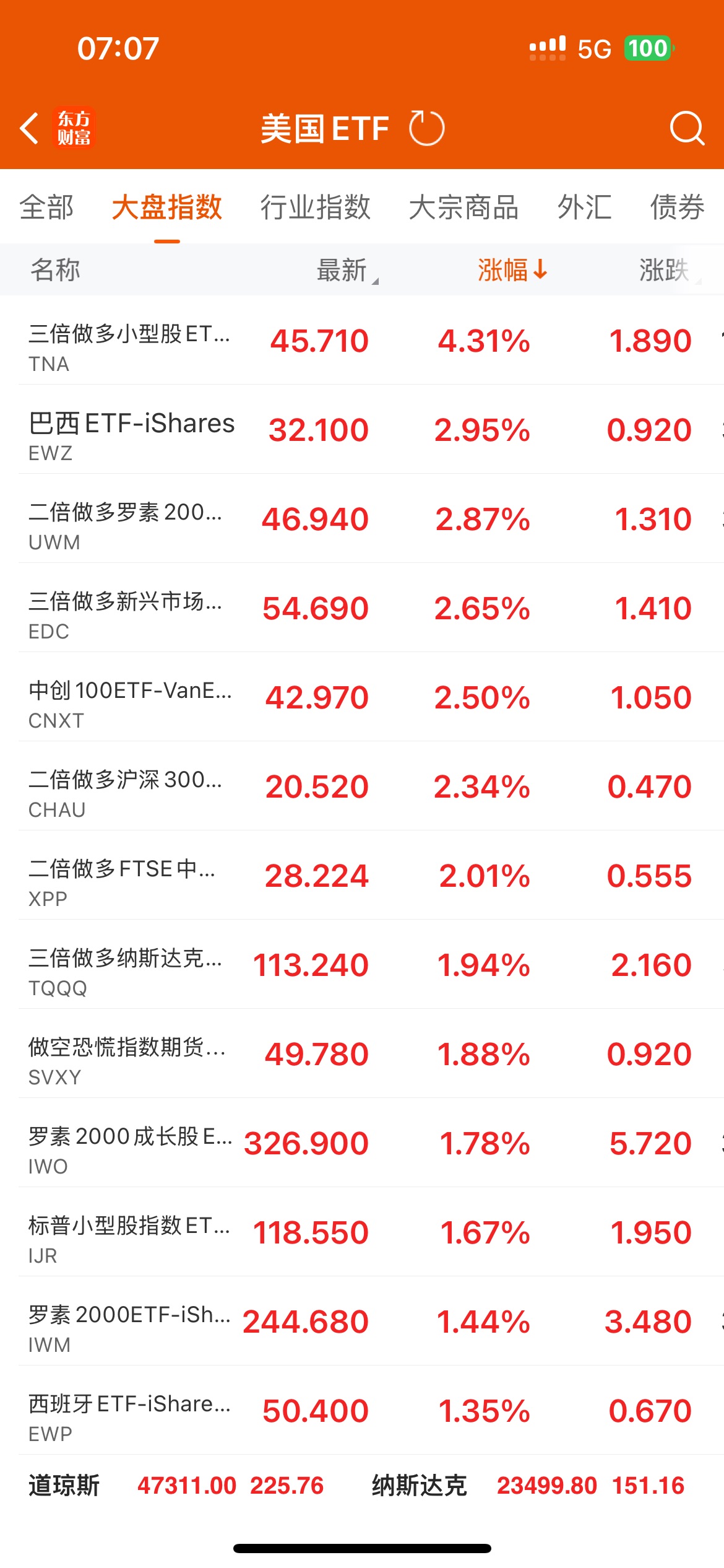 三倍做多小盘股ETF-Direxion(TNA.US) 升4.31%,成交额5.94亿美元。