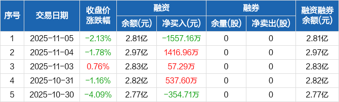 天山电子:融资净偿还1557.16万元,融资余额2.81亿元(11-05)