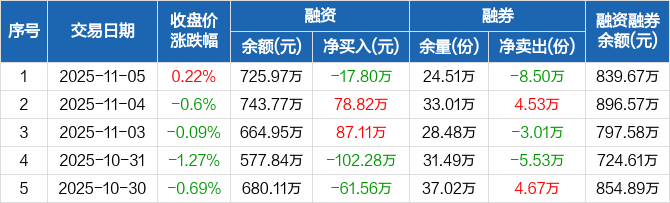 沪深300ETF南方:融资净偿还17.8万元,融资余额725.97万元(11-05)