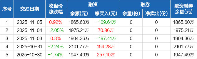 创业板ETF天弘:融资净偿还109.61万元,融资余额1865.6万元(11-05)