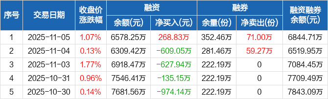 旅游ETF:融资净买入268.83万元,融资余额6578.25万元(11-05)