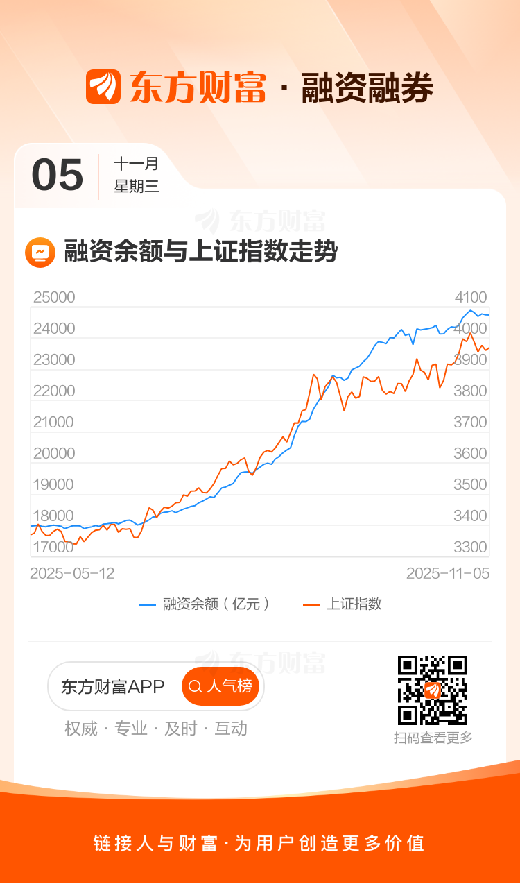 11月05日A股三大指数集体收涨,杠杆资金呈净卖出之势,当天融资余额2.47万亿,较上一交易日减少1.43亿。