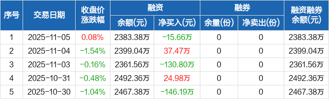 通用航空ETF:融资净偿还15.66万元,融资余额2383.38万元(11-05)