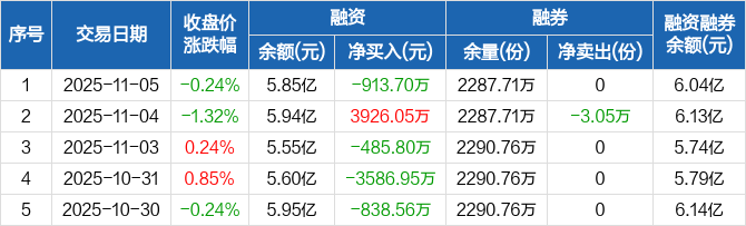 消费ETF:融资净偿还913.7万元,融资余额5.85亿元(11-05)