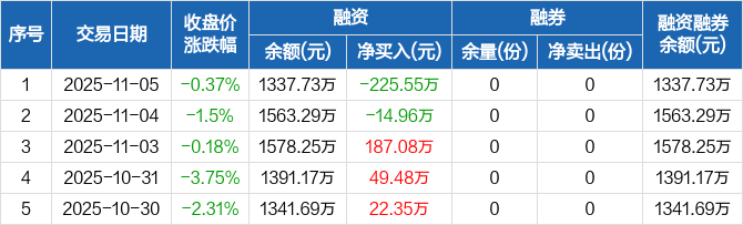 电子ETF:融资净偿还225.55万元,融资余额1337.73万元(11-05)