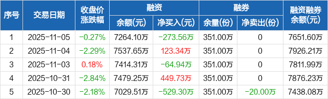 消费电子ETF:融资净偿还273.56万元,融资余额7264.1万元(11-05)