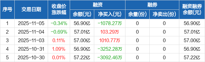 黄金ETF:融资净偿还1078.27万元,融资余额56.9亿元(11-05)