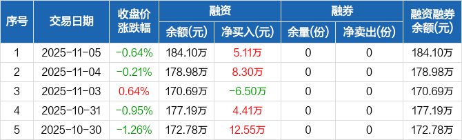 恒生中国企业ETF:融资净买入5.11万元,融资余额184.1万元(11-05)