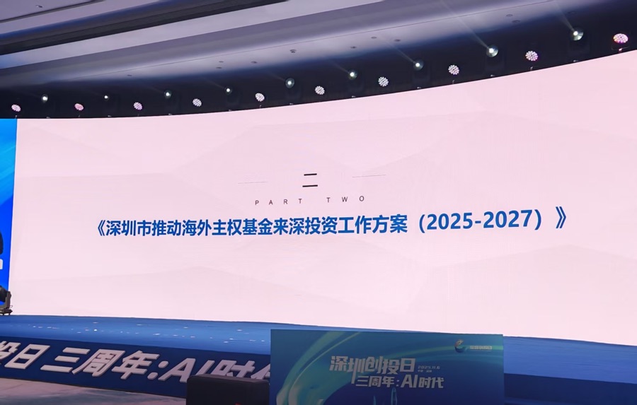 11月6日,在“深圳创投日”现场,深圳市委金融办发布了《深圳市推动海外主权基金来深投资工作方案(2025-2027)》(简称《工作方案》),包括10条政策,共计24项措施,吸引外资投向“20+8”战略性新兴产业集群、未来产业及基础设施等。