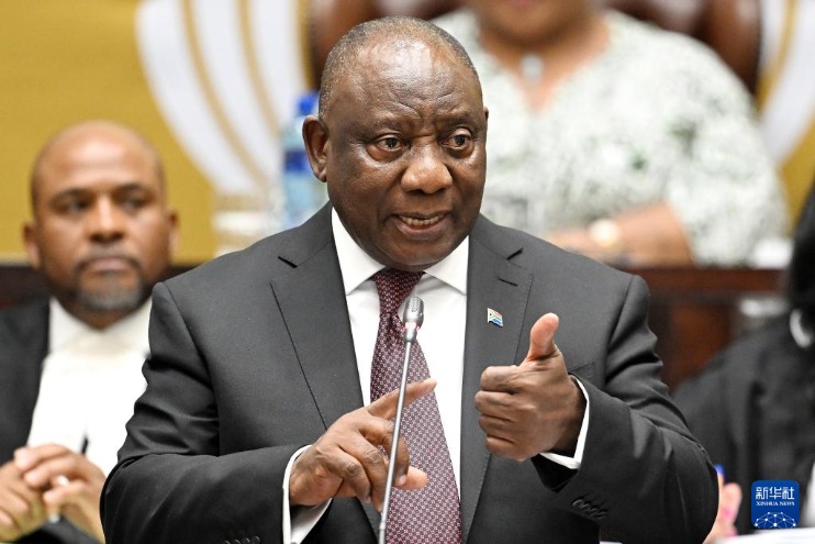 11月6日,在南非开普敦,南非总统拉马福萨在国民议会回答议员提问。新华社发(哈比索·姆卡贝拉摄)