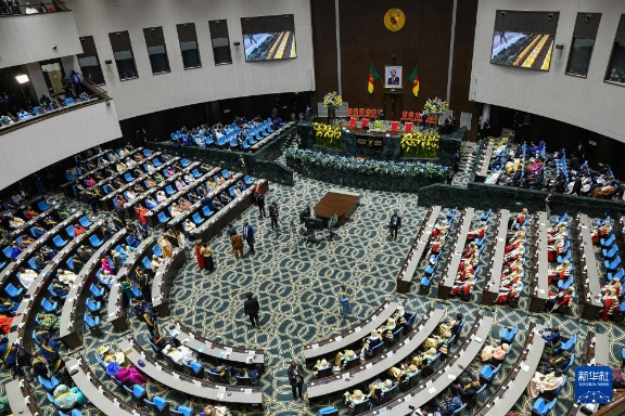 这是11月6日在喀麦隆首都雅温得的国民议会大楼内拍摄的总统宣誓就职仪式现场。新华社发(科普索摄)