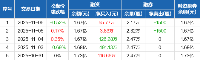万年青:融资净买入55.77万元,融资余额1.67亿元(11-06)