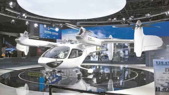 时的科技自主研发的E20 eVTOL亮相本届进博会。 文汇报邢千里摄