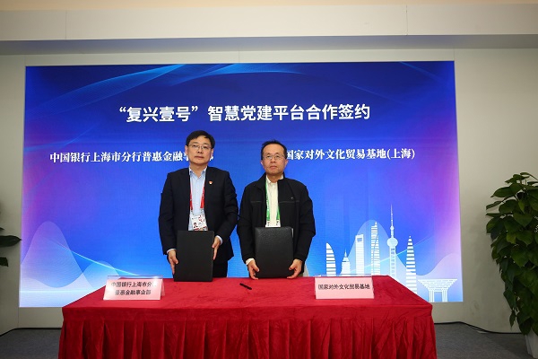 对接会开篇,中国银行上海市分行与国家对外文化贸易基地(上海)就“复兴壹号”智慧党建平台达成合作并完成签约,以党建为引领,开启金融与文旅协同发展的全新篇章。