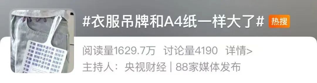 冲上热搜!衣服吊牌都和A4纸一样大了!什么情况?
