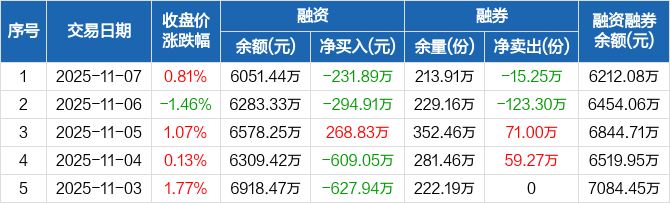 旅游ETF:融资净偿还231.89万元,融资余额6051.44万元(11-07)