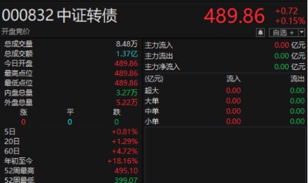 上证报中国证券网讯 Choice数据显示,11月10日,中证转债指数开盘上涨0.15%,报489.86点。其中,国城转债、天赐转债、大中转债、东时转债涨幅居前,分别涨4.60%、3.69%、3.07%、3.03%;太平转债、嘉泽转债、永02转债跌幅居前,分别跌0.96%,0.90%,0.88%。