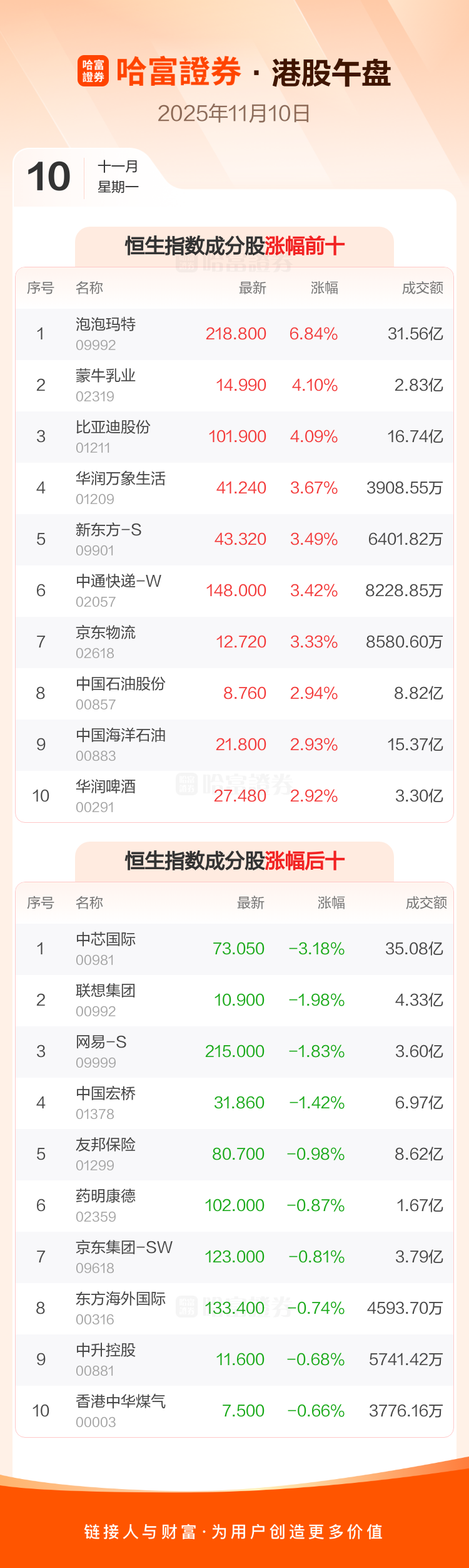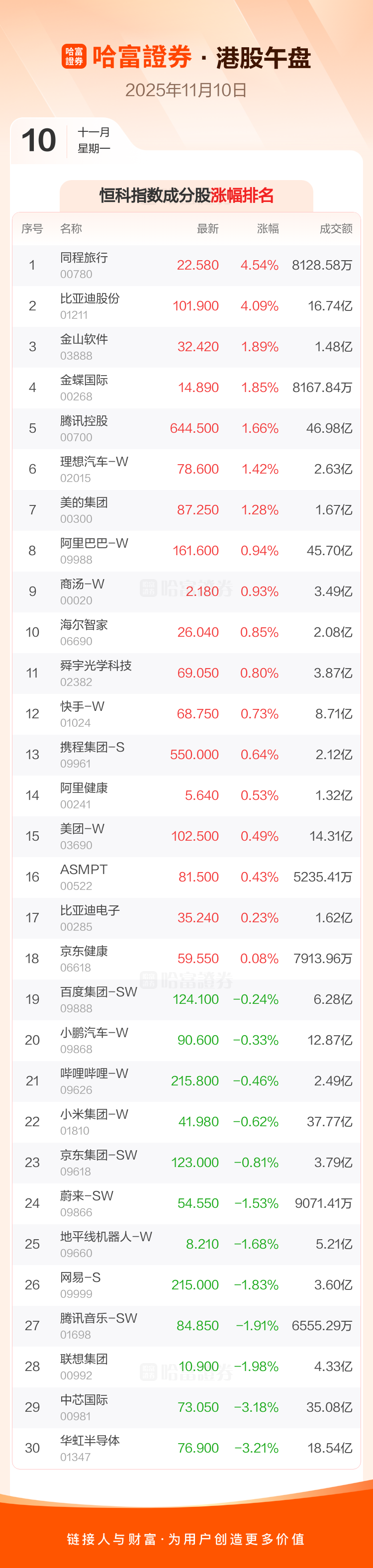 港股午评:恒生指数涨0.61% 恒生科技指数涨0.12%