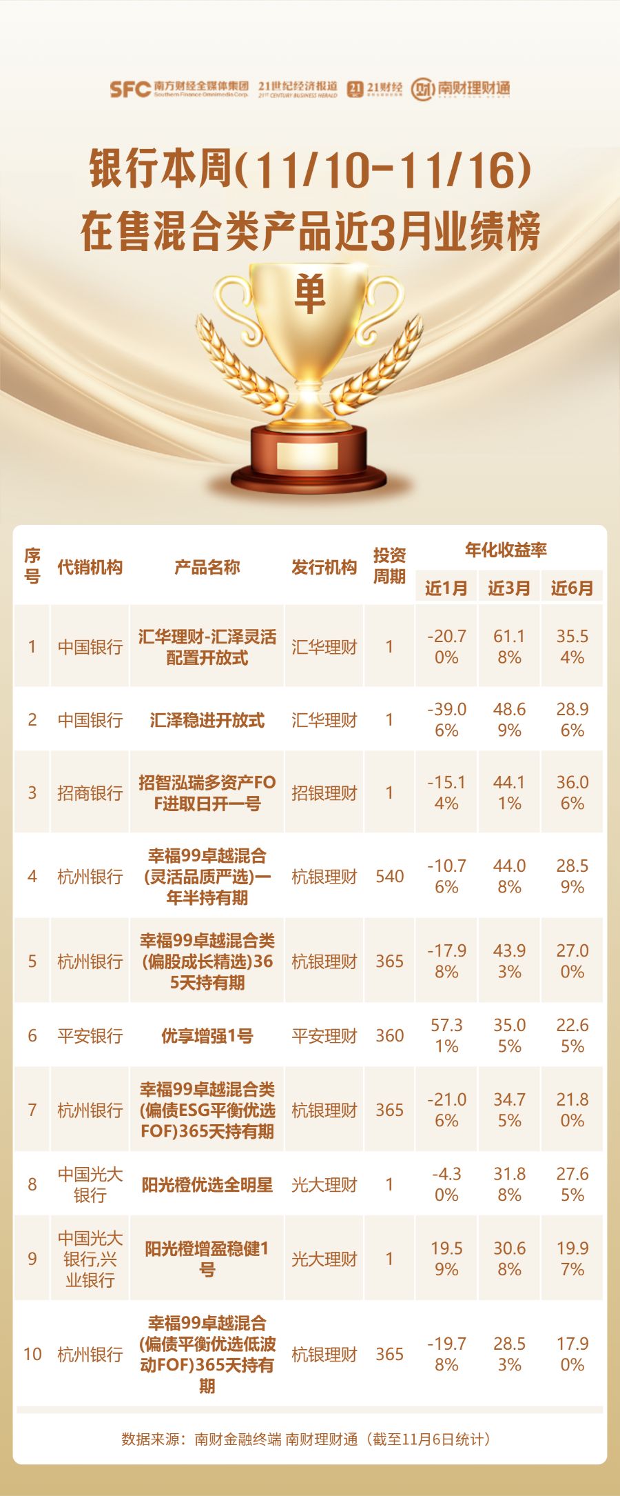 编者按:当前银行理财货架产品琳琅满目,诸如“增强”“稳健”“均衡”等名称相近、特征模糊的产品层出不穷,投资者应如何甄别与选择?为降低投资者的选择成本,南财理财通课题组从代销机构角度入手,聚焦各渠道当周在售的理财产品,搜罗其中业绩表现优异者,并发布代销产品业绩榜单。