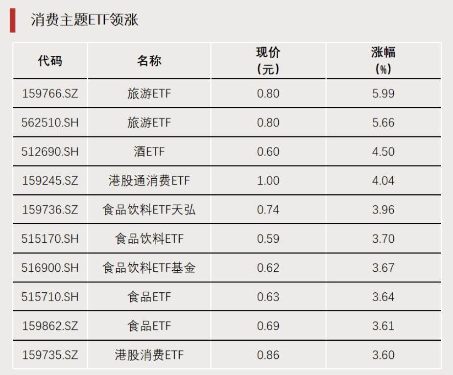 消费主题ETF领涨