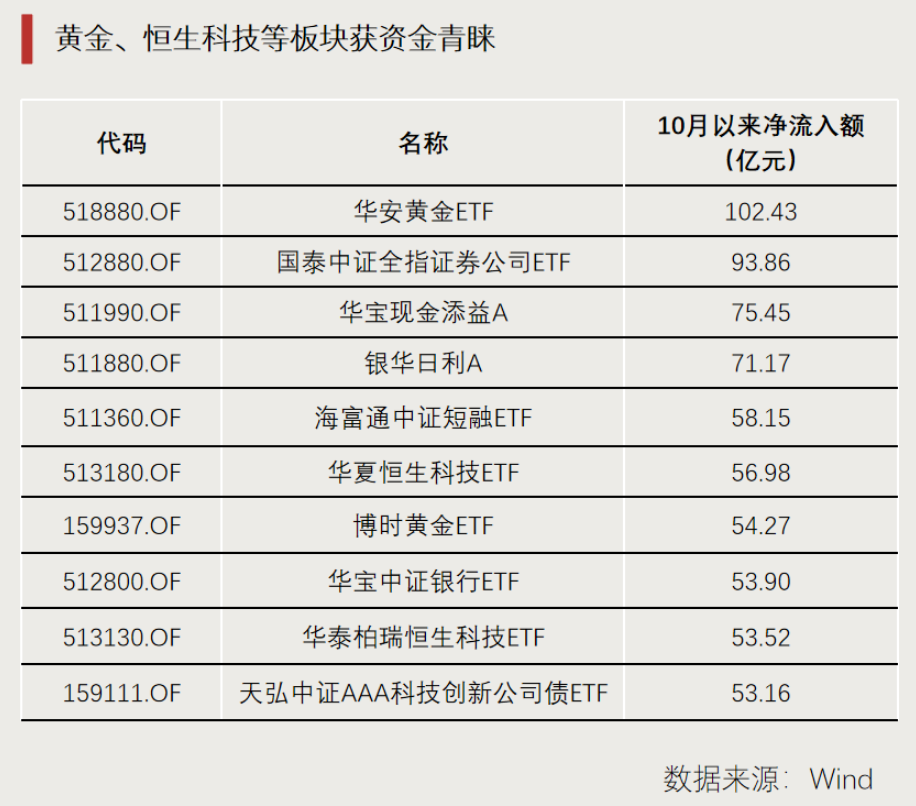 10月以来,黄金、恒生科技等板块获资金青睐。