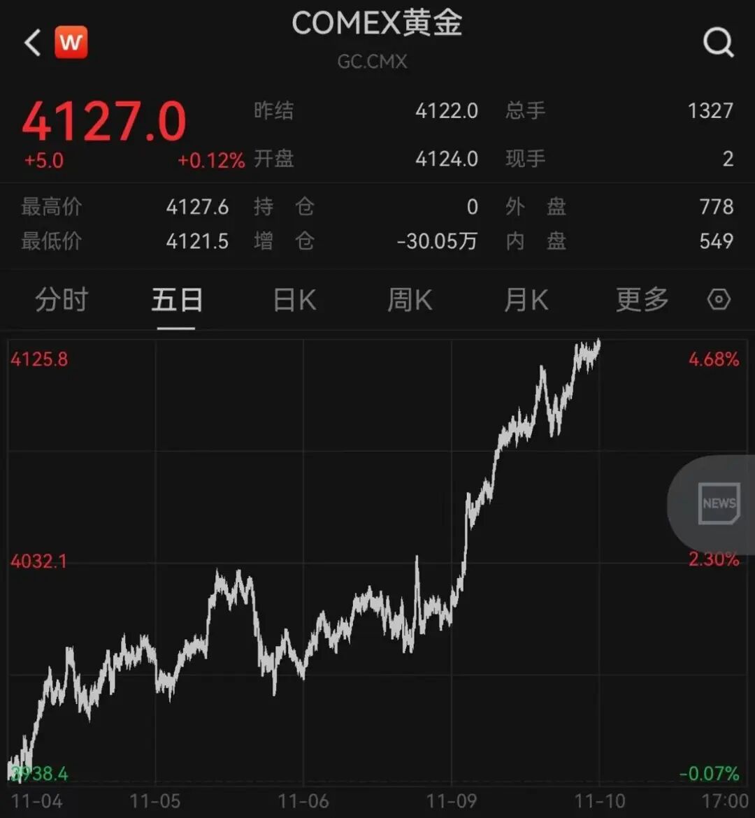 美国政府停摆有望结束,有望消除笼罩美联储利率路径的迷雾。COMEX黄金期货周一日内涨幅达到2.83%。