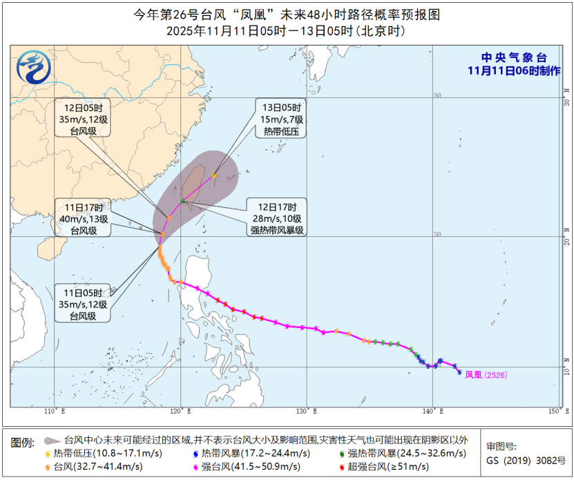 台风黄色预警:“凤凰”将于明日在台湾岛西南部沿海再次登陆