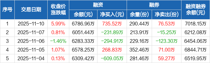 旅游ETF:融资净买入735.52万元,融资余额6786.96万元(11-10)