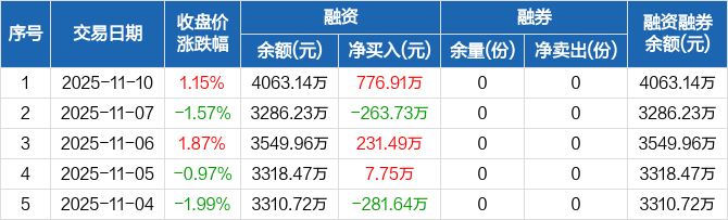 港股科技ETF:融资净买入776.91万元,融资余额4063.14万元(11-10)