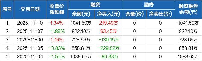恒生互联网科技ETF:融资净买入219.49万元,融资余额1041.59万元(11-10)