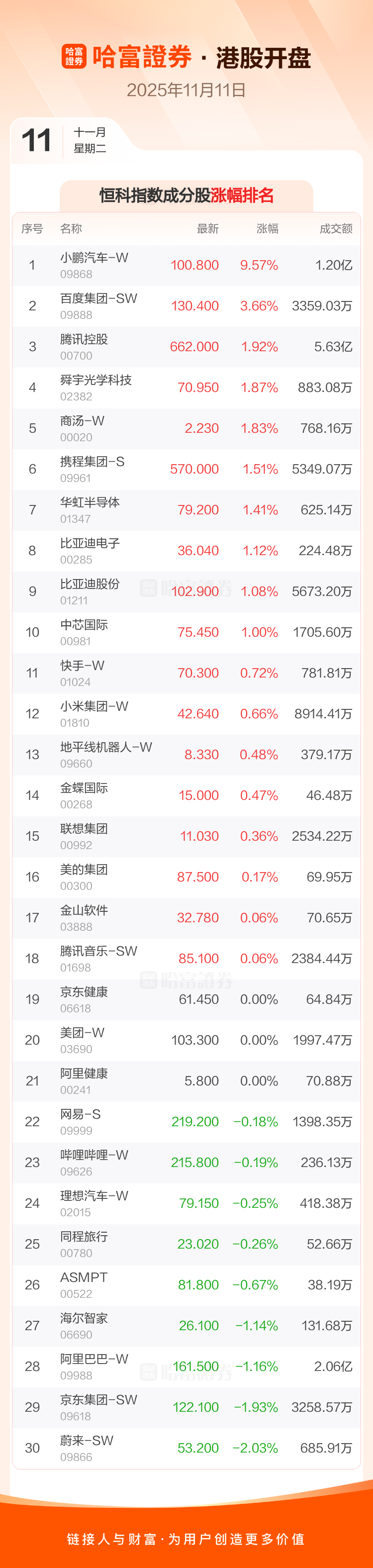 港股开盘:恒指高开0.37% 百度集团-SW领涨成分股