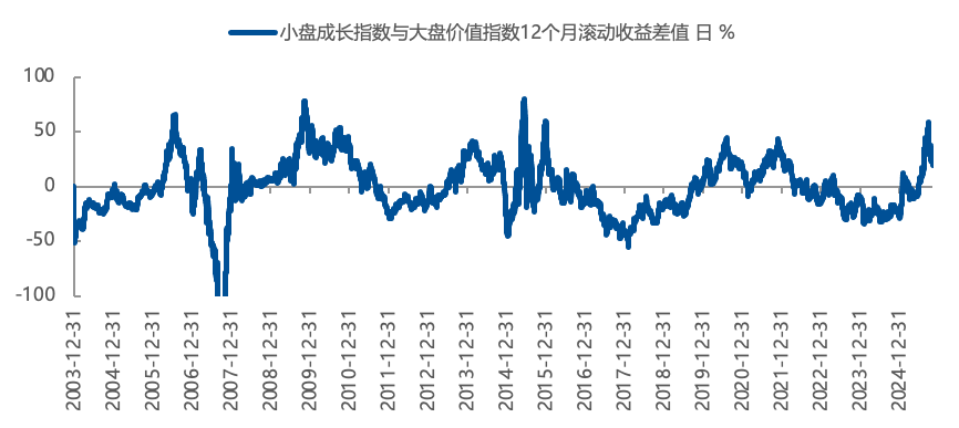 图:A股小盘成长与大盘价值的收益差值有较强的均值回归效应