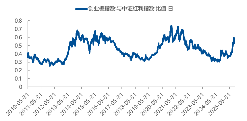 图:创业板指与中证红利指数的相对表现经历了多轮变化