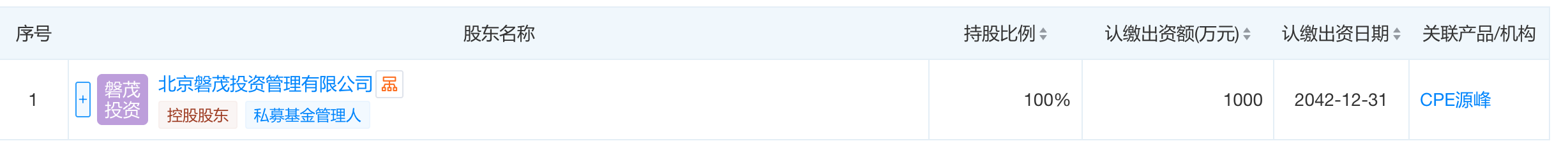 据财联社等媒体报道,CPE源峰的前身是中信产业基金。天眼查显示,CPE源峰关联机构为北京磐茂投资管理有限公司(下称“北京磐茂”)。根据中国证券投资基金业协会信息,北京磐茂的首席执行官为刘乐飞,法定代表人、总经理、董事总经理、执行董事为田宇,首席财务官为聂磊。